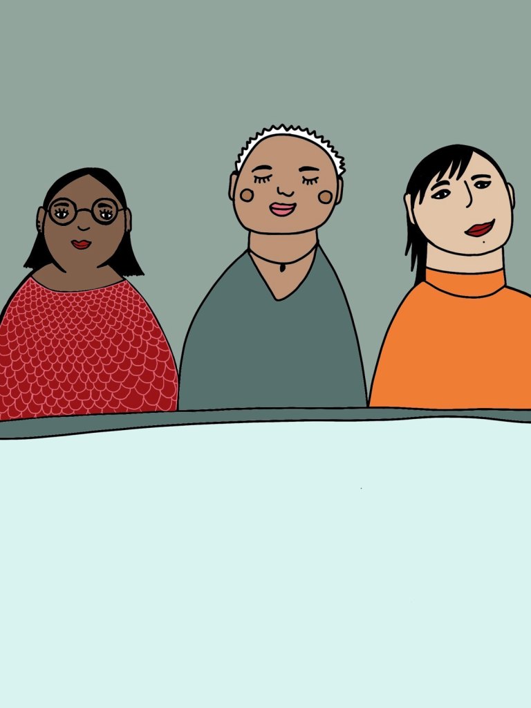 Referent*innen: Wir, Ele (dey), Nuan (keine Pronomen) und Saraina (sie) von fem*ergenz lernen seit Jahren von Transformativer Gerechtigkeit, die ihren Ursprung in aktivistischen, feministischen, queeren und Schwarzen Communities in den USA hat. Außerdem bringen wir durch Weiterbildungen Wissen aus WenDo, Traumapädagogik/-beratung und Sexualpädagogik mit. Wir sind alle drei weiß, nicht-behindert, bildungsprivilegiert und queer positioniert.